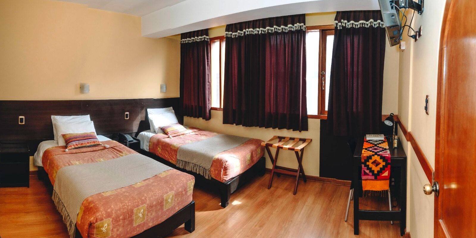 Descansa en una habitación moderna, cómoda y silenciosa en el corazón de Cusco. Equipada con aislamiento acústico, dos camas individuales (o cama doble), baño privado con agua caliente 24/7, Wi-Fi de alta velocidad, TV pantalla plana y atención personalizada. Ideal para parejas o amigos que valoran el confort y la tranquilidad.